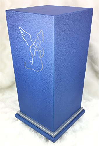 PERSONALIZED Custom Engraved Angel Cremation Urn Vault by Amaranthine Urns, made in the USA, Eaton SE Painted Silver (up to 200 lbs living weight) (Celestial Blue)