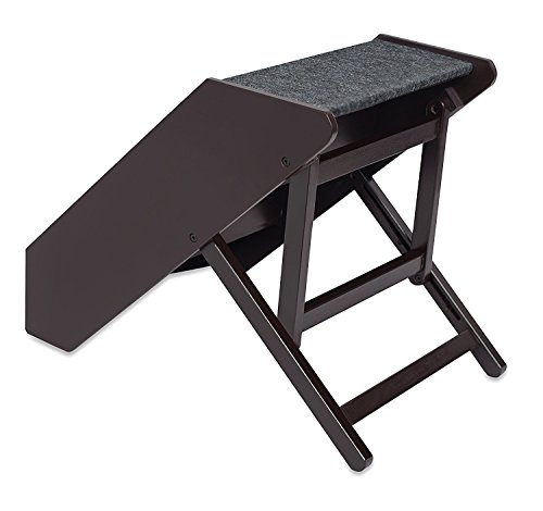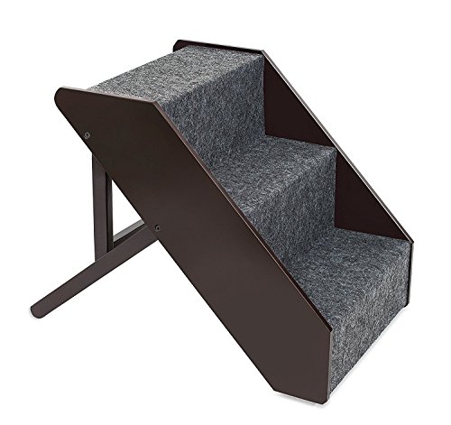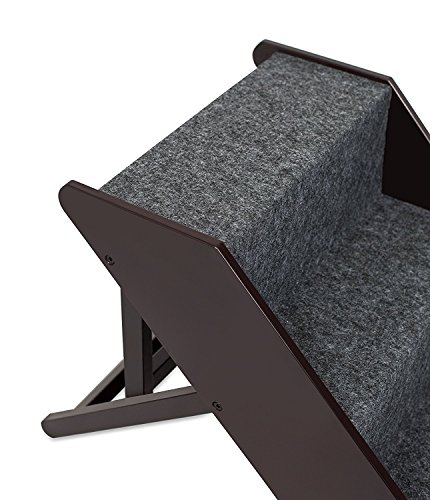 Internet's Best Adjustable Pet Steps is the perfect step ramp for pets (dog, cat, puppy) who need extra help climbing into the car, bed, sofa, couch, small stairs or ledges. Built with a handsome design, the pet ramp offers a warm accent to any room. The step ramp is also sturdy enough to hold up to 175 lbs. Crafted with an indoor/outdoor durable, paw-friendly carpet for added traction and comfort, your best friend will love moving up and down this step ramp. The Pet Steps may be adjusted to 3 separate heights-16.5, 17.25 & 20.5 Inches. When not in use, simply collapse the pet ramp down to 6.25" height for easy storage. Give your dog the freedom it needs again with Internet's Best Adjustable Pet Steps.Feature