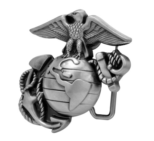 Studio : Buckle Rage Publisher : Buckle Rage Binding : Apparel Product Description US Marine Corps Logo Belt Buckle, Solid Color Tone, Show your patriotic pride with the US Marine Corps Logo Belt Buckle. Made of zinc alloy this durable buckle is designed to fit your standard 1.5" snap on belt. Features Include: Fits a Standard 1.5" Snap On Belt, Crafted in Zinc Alloy, US Marine Corps Logo Design, Solid Color Tone 0