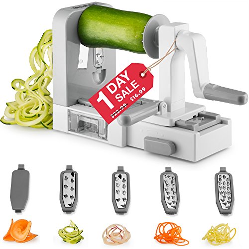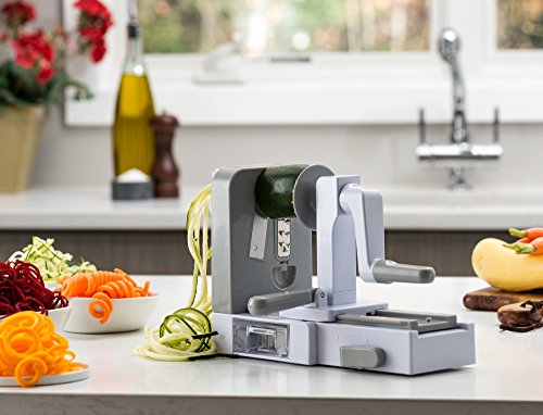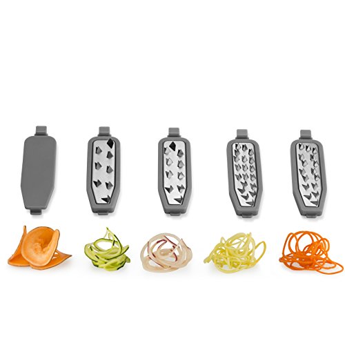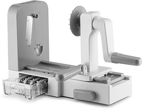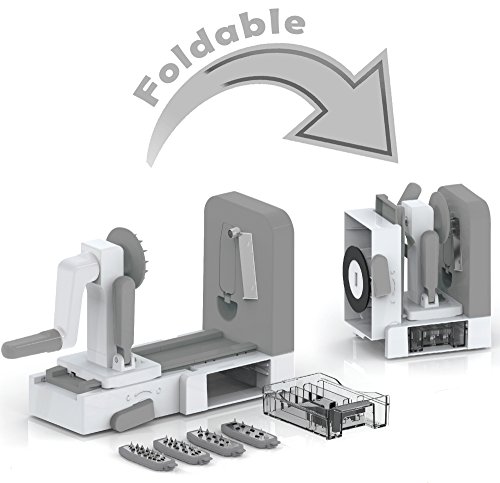Studio : Gourmia Publisher : Gourmia Product Description Looking to reduce in your carb intake but can't escape that deliciousness pasta brings to your plate? Get both healthy and tasty with Gourmia's Foldable 5 Blade Spiralizer Set! The perfect way to make delicious and healthy pasta for you to enjoy! PRODUCT FEATURES ? Foldable Design to Save Space in Your Kitchen ? 5 Interchangeable Stainless Steel Blades ? Storage Container for 4 Blades ? Suction Feet No Skid Grip ENDLESS POSSIBILITIES Whether you're making squash spaghetti or zucchini pasta, you'll be sure you're getting the best quality noodles out there from your vegetables. A much healthier way to cook matched with unbeatable taste, you will find yourself using our spiralizer every day for even the simplest meals. How could you not? Once you get a taste of your creation you will see there is no turning back to any other pasta making option. THE PERFECT KITCHEN COUNTER TOP APPLIANCE Add our lovely Spiralizer Set to your kitchen decor with great comfort! The suction feet system allows it to easily grip on to your kitchen counter for a strong and stable set up. That way your pasta making won't be in anyway disrupted by sudden movements and you remain completely safe from the blades. FOLDABLE QUALITY Whenever you're done making your pasta, simply fold the body of the spiralizer, place the blades into the included storage containers, and slip them in a corner of your kitchen. Easy hideaway and storage! Your Gourmia Spiralizer Set will become your new kitchen best friend! 0
