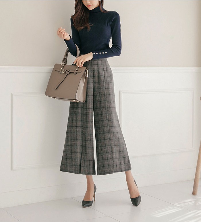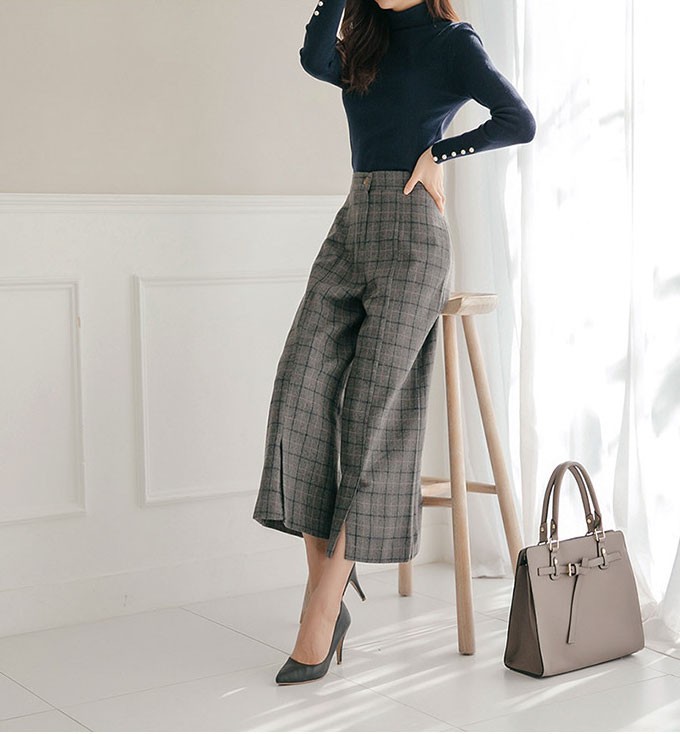 商品名:パンツ ワイドパンツ グレンチェック クロップドパンツ