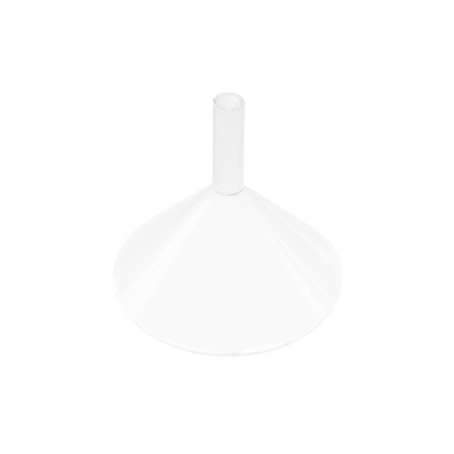 - Clear plastic funnels measure 2" inches tall, 1/4" inch wide opening at the top, and 1 3/4" inches wide at the bottom opening.