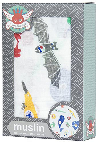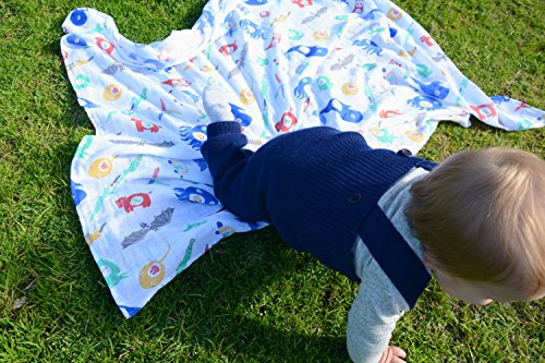 Weegoamigo Baby Muslin Swaddle Blanket - Tummy Time, Blue
