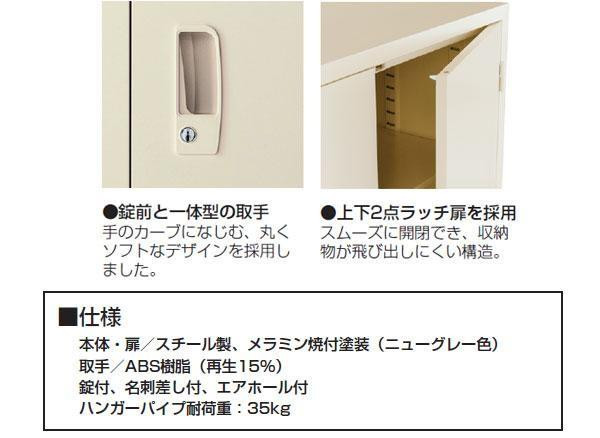 オフィスにぴったりのワードローブです。天面両側には壁固定用のハーフパンチ加工を施しており壁固定金具(TKU-2/別売)や床固定金具(YKU-2/別売)を使用することで壁や床面に固定し、転倒を防止することができます。 |