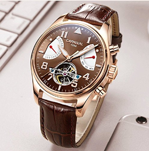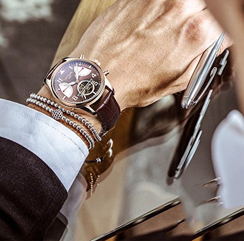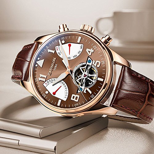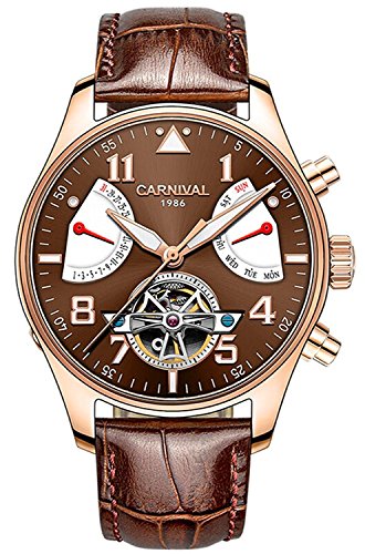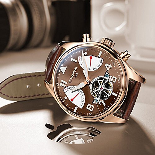 원본상품명: Carnivaメンズスケルトン腕時計Tourbillon自動防水パイロット腕時計ステンレススチ?ルCase Mechanical Watch 44mm Rose Gold&Brown&Brown