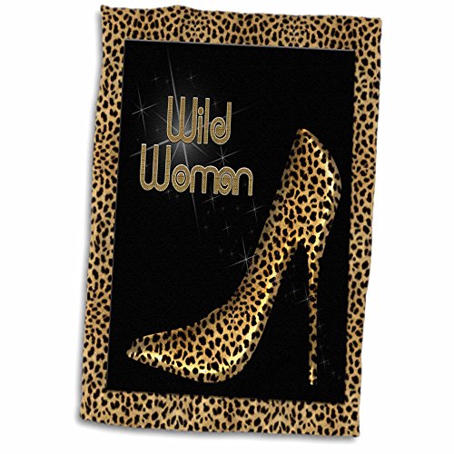 3D Rose Cheetah Print Wild Woman Stiletto Pump and Diamond Bling twl_21804_1 Towel, 15" x 22"