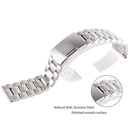 - Feature : Compatible with Moto 360 2 (2nd Gen, 46mm 2015), Pebble Time/ Pebble Time Steel/ Pebble Classic and other watches with standard 22mm width lugs (see detailed description) / Premium 304L stainless steel with flexible solid links features a combination of toughness and durability / Polished smooth surface feels comfortable on your wrist which makes your Watch noble with low profile luxury style / Adjustable length fits your wrist with spring bar tool, up to 6 links can be removed, 8mm/piece / Trusted fold-over clasp with hidden single push-button ensure the security when it clicks