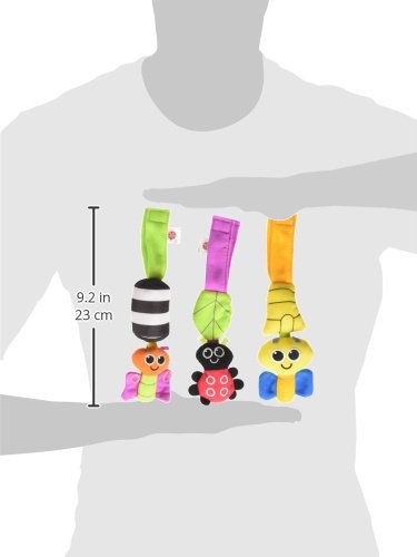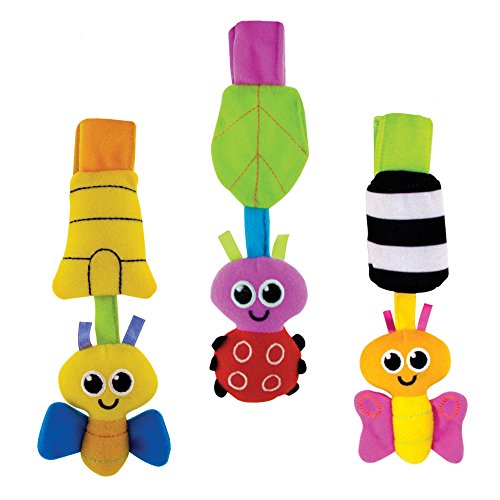 - Distinct sounds (chime, crinkle, rattle) encourage baby to seek the source of the sound