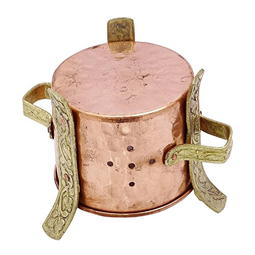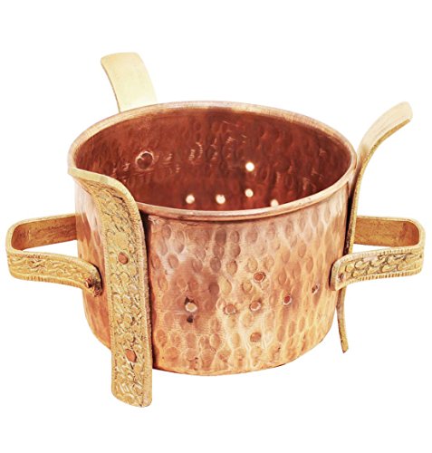 Studio : RoyaltyLane Publisher : RoyaltyLane Product Description Sigri or angeethi is an important part of Indian tabletop ware. Used as a centerpiece on the dining table. You can place 3 or 4 tealight candle burners inside this angeethi. Put karahi, handi or any other serveware containing food on top of the burner. Indian food is best enjoyed when it is warm. This burner is made in pure copper and having 3 designer legs made of brass and this gives authentic Indian dining experience. The ageless use of copper bears testimony to its myriad virtue and everlasting appeal. Its therapeutic value has been handed down to us through the ages. In fact, water stored in copperware is virtually the elixir of life. Purified, it helps to regulate digestion and cardiac orders- the basis of good health. Our scriptures also recommended the drinking of four glasses of water stored overnight in copper utensils every morning. The disease-causing bacteria cannot survive for more than a few hours on copper surfaces. Care Tips:- Clean your copperware by hand and avoid dishwasher as the detergent can cause oxidation leading to permanent damage. Use a solution of equal quantities vinegar or lemon juice and salt diluted with some water at such times but don't use it regularly. Also avoid scratchy cleaners like steel wool. A simple, soft cleaning liquid on soap base, hot water and a soft washing cloth is best for daily use. 0