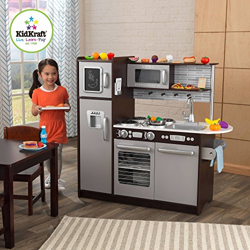 -. Title : KidKraft Uptown Espresso Wooden Play Kitchen with 30-Piece Play Food Set