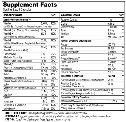 -. Feature : 100% Whole Food Matrix / Hormone Support* - Broccoli seed extract, Folate, Magnesium, Vitamins B6 and E / Bone Health* - Calcium, Magnesium, Vitamin K, and Boron / Heart Health* - Resveratrol, Serratiopeptidase, Vitamins C, B6, B12 and Folate / Brain Health* - Zinc, Vitamin B, Resveratrol, and Goji Berry