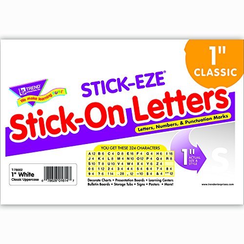 Studio : Educators Resource Publisher : Educators Resource Binding : Office Product Product Description Creating professional bulletin boards, posters, and signs is a breeze with these self-adhesive letters. Set contains: 184 uppercase letters, 50 numerals, and 90 punctuation marks. 0