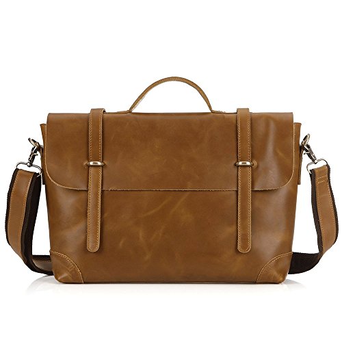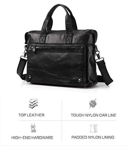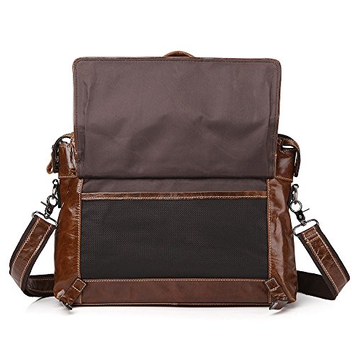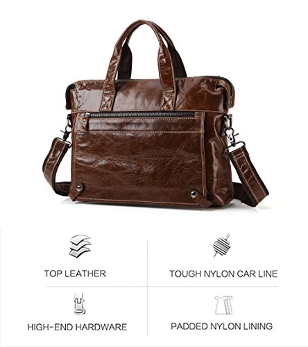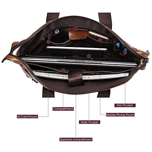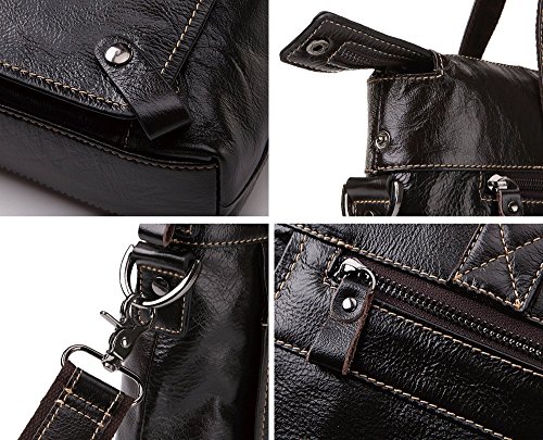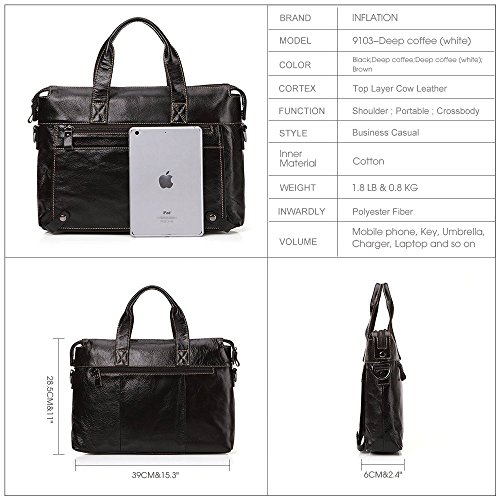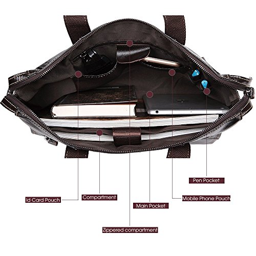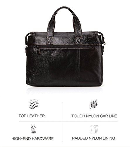 -. Feature : 100% ITALIAN COWHIDE - Featured with the first layer of leather, high-quality suture process. High quality hand leather, smooth and smooth color can be maintained for 10 years. / PERFECT STRUCTURE AND SIZE- Dimensions = 15.35"3"11.6".Perfect for documents, Laptop / Notebook, Netbook or iPad / MULTIFUNCTIONAL CARRYING OPTIONS - Shoulder straps and handle for use Messenger Bag / satchel / notebook computer bag / bag / bag / handbag business documents, strong but supple cow leather and sturdy canvas lining on this inside. / NOT THE SAME DIGIN- the outermost two corners is not just decorative, is a bag cover button, inside the lid there is a very mysterious, very safe bag. Can put your valuables. / LARGE STORAGE - External,Two outside zip pocket. Inside?a paper bag, a wallet bag, a bag of cigarettes, an inside zipper bag, paper bag can be mounted 14 inch computer, IPAD, as well as A4 paper and magazines etc.