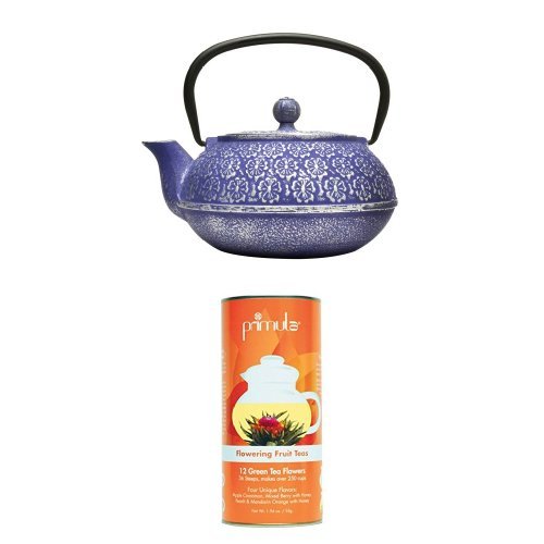 -. Title : Blue Floral Cast Iron Teapot, 34-Ounce, Blue Floral