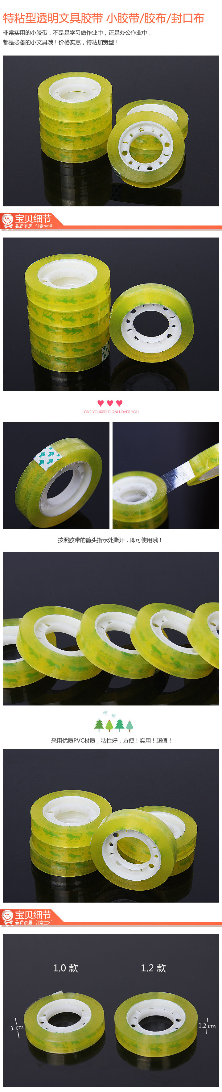学生用品特粘透明文具胶带宽1.2净厚0.8cm小胶带/胶布/封口胶批发