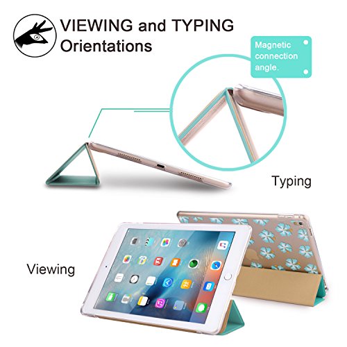 -. Binding : Wireless Phone Accessory -. Brand : Dailylux -. Feature : iPad Pro Cases,Lightweight case design protects your Apple iPad Pro 9.7 2016 without adding bulk. / HIGH QUALITY: Premium PU leather cover and TPU back over to protect your device from shock,fingerprints and scratches.Microfiber lining inside helps keep your display clean / MAGNETIC DESIGN:When you fold the case back,the magnetic design will tilt your device into a comfortable viewing or writing position / Smart cover supports automatic sleep/wake function. / Unique printing design technology makes your tablet outstanding -. Label : Dailylux -. Manufacturer : Dailylux -. MPN : TA0010 -. PackageQuantity : 1 -. PartNumber : TA0010 -. ProductGroup : Wireless -. ProductTypeName : WIRELESS_ACCESSORY -. Publisher : Dailylux -. Size : 9.7 Inch -. Studio : Dailylux -. Title : iPad Pro 9.7 Case,Dailylux Slim Smart Folio Stand Cases Clear Transparent PC Back +Shockproof Soft TPU Edge Protection Auto Wake Sleep Function Flower Cover for Apple iPad Pro 9.7" -Mint Green