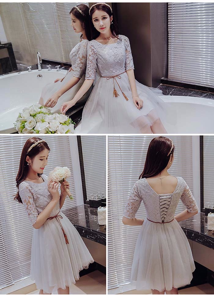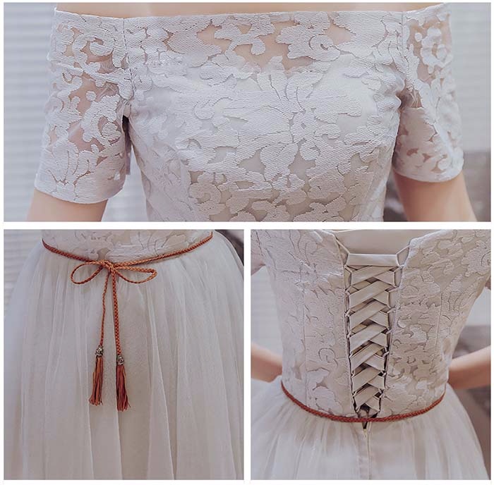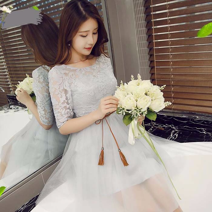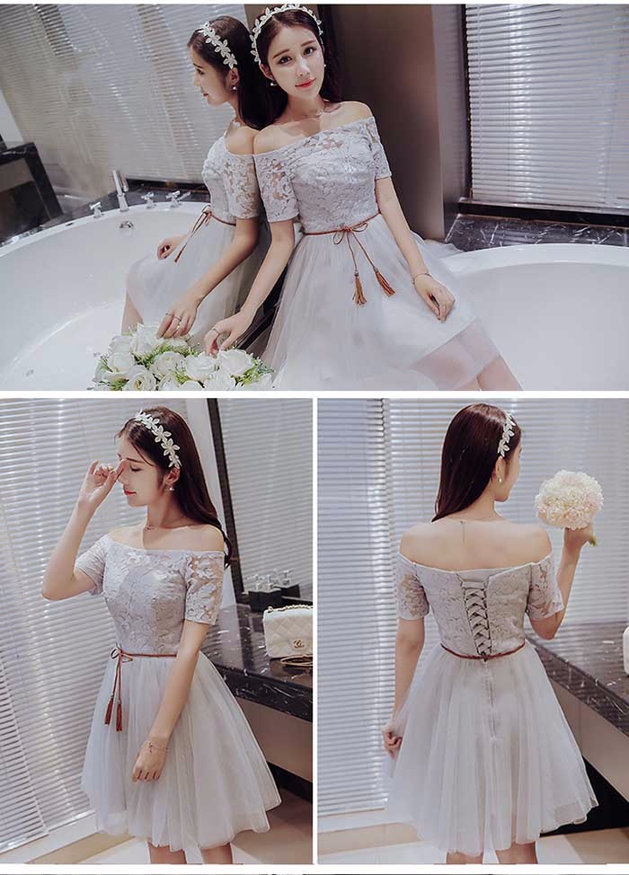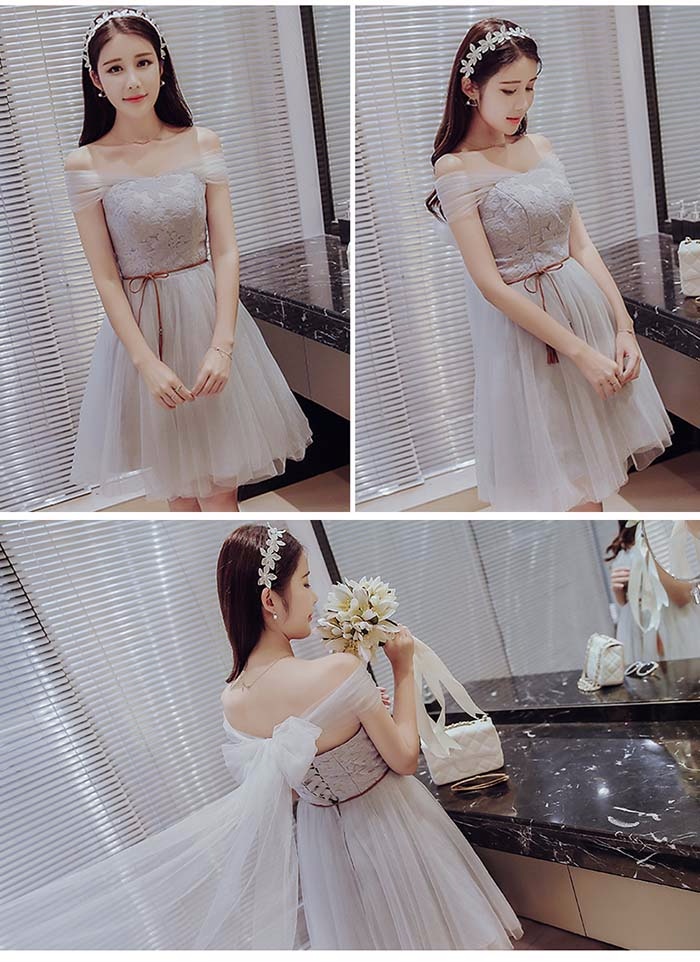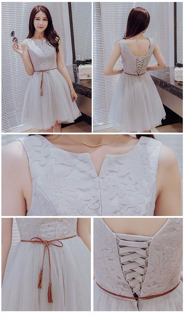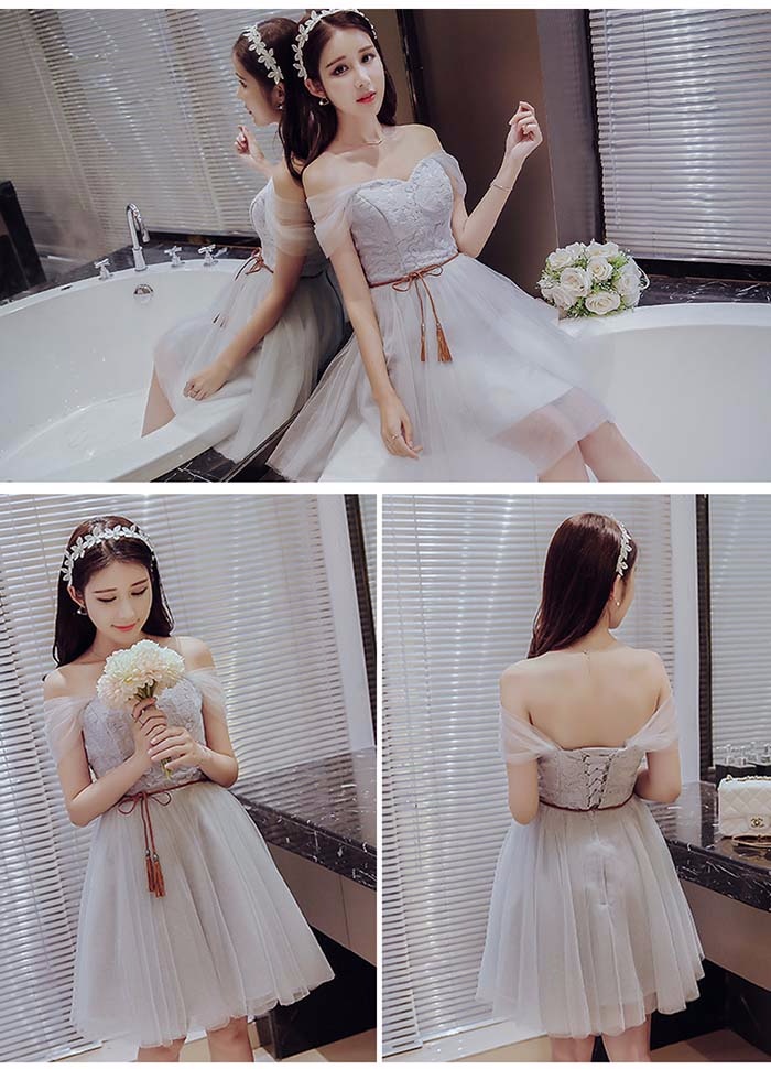商 品 名 : ブライズメイドドレス ショートドレス ベルド付き プリンセスドレス 締め上げタイプ 花嫁 ウェディングドレス グレー シャンパン da006n1n1m2