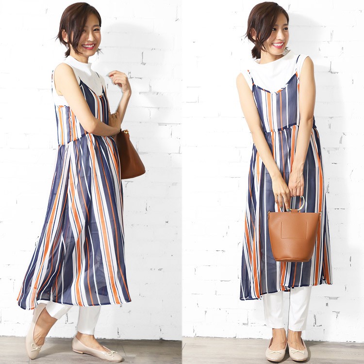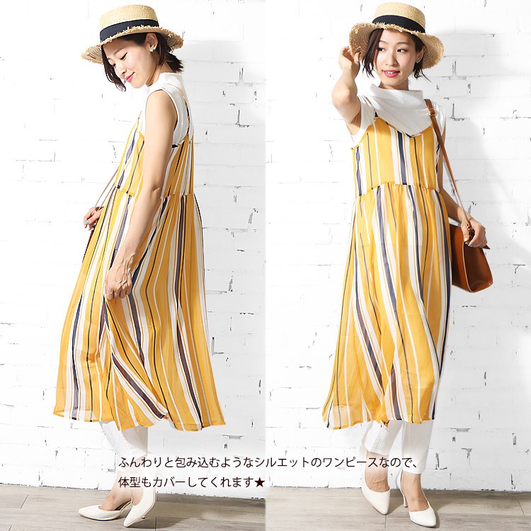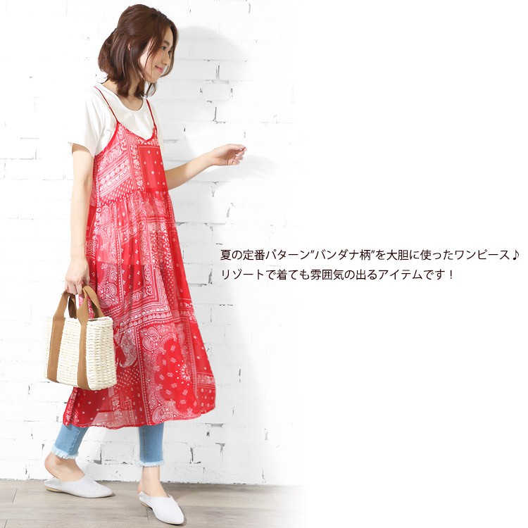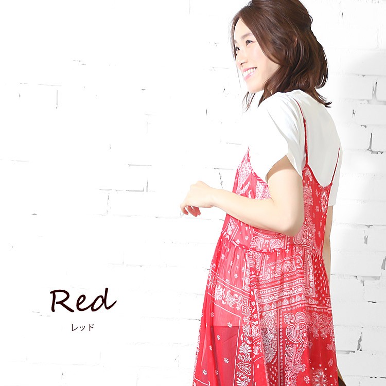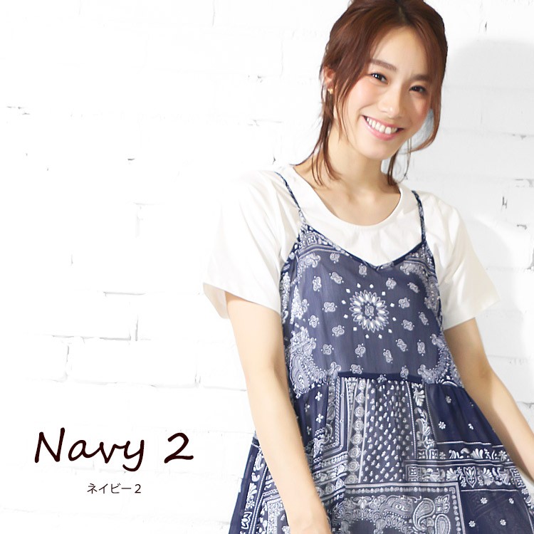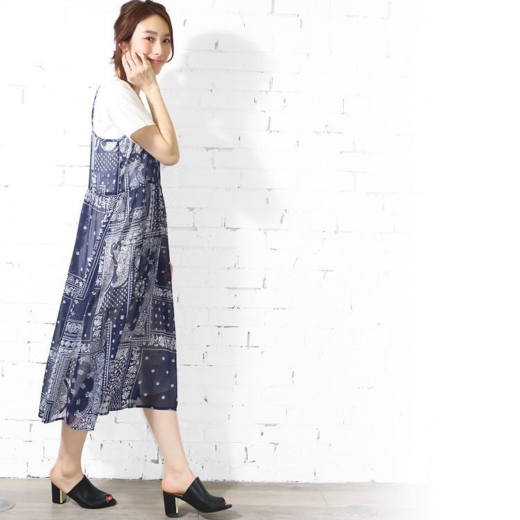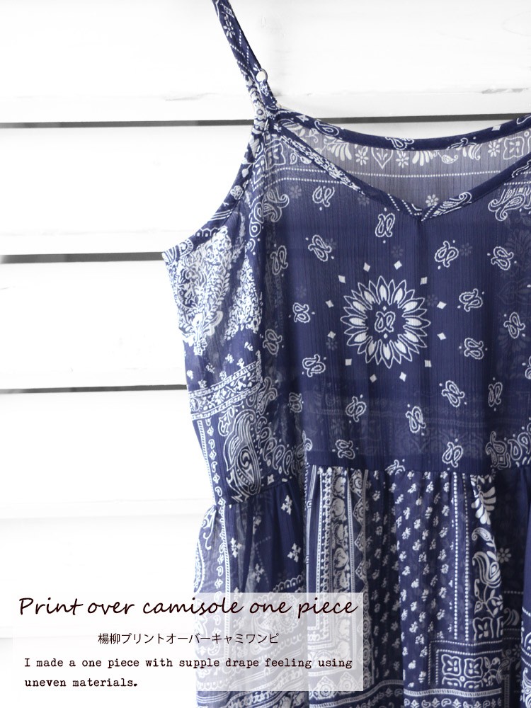 商品名:楊柳プリントオーバーキャミワンピース