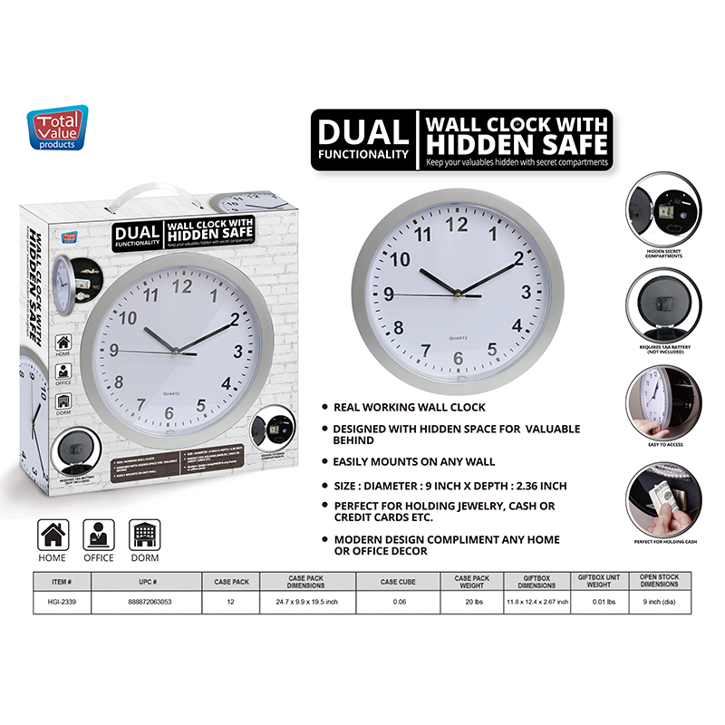 Description: A Secret Place That Is Hidden In Plain Sight Is Often The Safest One. This Safe Wall Clock Can Be Exactly Such A Hiding Place For You. Hang It On The Wall And It Functions Just Like A Regular Wall Clock Clock Face Can Be Opened To Reveal A Concealed Cavity Perfect For Storing Something You Want Nou0026nbsp;