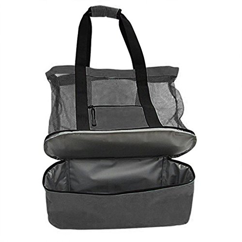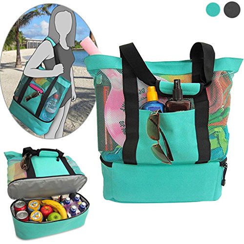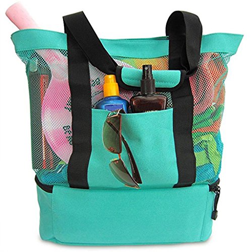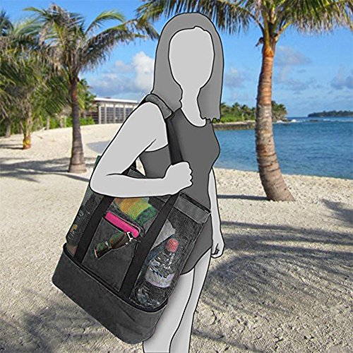 Studio : Bluelans Publisher : Bluelans Binding : Apparel Product Description Specifications: Enjoy the convenience of this fashionable, lightweight, polyester and mesh beach bag with an additional cooler bag segment with zipper. This lightweight beach tote bag can easily carry 4 large beach towels and features two external pockets, one zippered for valuables or cell phone, plus another for sunscreen and additional items for your day ahead. Being durable in construction with padded, reinforced handles for comfort and a shoulder drop. This tote bag is perfect for the beach, pool, parks, picnics, BBQ, camping, road trips, vacations, festivals, travel and sporting events. Featuring an additional insulated cooler bag section with an easy to clean flexible soft liner, perfect for keeping your food and drinks cool and fresh. This picnic lunch cooler bag attribute makes the bag a must for any parent. Makes an ideal present for mum. Item Name: Handbag Gender: Women's Style: Casual Material: Polyester Mesh Features: Waterproof, Insulated Cooler Food Bag, Multi-functional Size: 51cm x 16cm x 51cm/20.08" x 6.30" x 20.08" (Approx.)