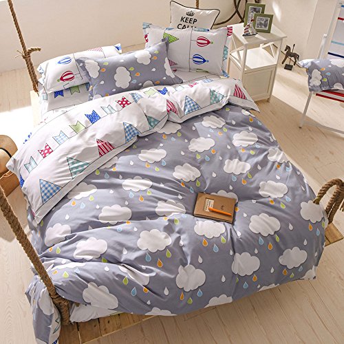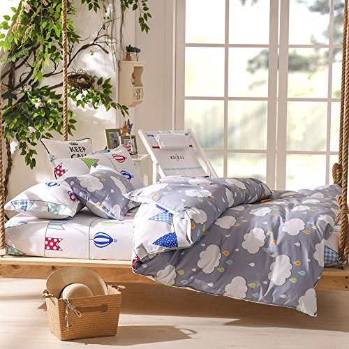 Nattey Clouds and Rain Cotton Blend Bed Pillowcase Duvet Cover Quilt Cover Set Twin Queen King Size (Twin)