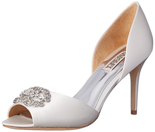 You'll be unforgettable in the Badgley Mischka Seneca d'Orsay pump. A sleek satin upper sparkles just as bright as the gemstone pendant accent at the peep toe, making this heel quite the eye-catcher.