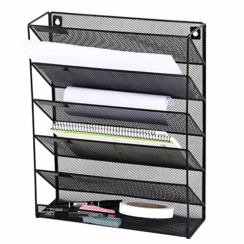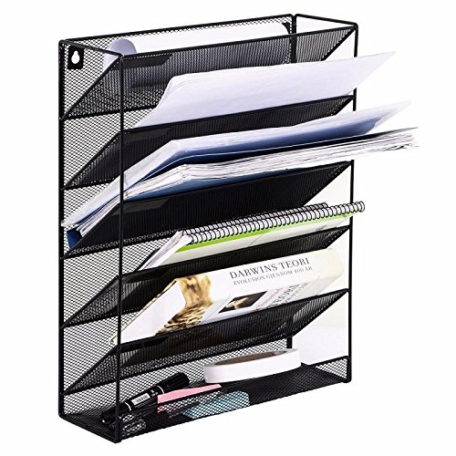 EaseOffice Mesh 5-Tier File Organizer Black Hanging File Organizer Vertical Holder for Office Home