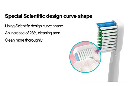 -. Feature : 1.Clean brushhead was designed by the curve shape, more in line with the teeth, clean area is increased by 28%. / 2.Using Dupont brush ,softer,more comfortable to clean / 3.Use the food grade seal packing,Layers of disinfection,More health and safety / 4.Brush head was use food grade ABC materials, give the user more reassurance. / 5.Gives a whole-mouth cleaning, including in interdental spaces by using Features MicroPulse Bristles to clean deep between teeth for outstanding plaque removal