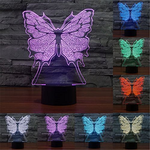 -. Feature : Touch Control: red, green, blue, yellow, cyan, pink, white, color changing. can fixed one color or 7 color gradual changing. / NOTICE:【3D just Visual, the lamp itself is Flat】Unique Lighting Effects Amazing Optical Visual Illusion Home Decor Lamp. / Power: input 100~240V; Output: 5V, 0.5A. Retail Box Size:aprox 26*20*6cm. / Energy saving. Power spend: 0.012kW.H/24 hours; LED Life Span: 10000hours. / Applicable scenarios: Bedroom, Baby room. Safety Night Light. LED light source, environmental protection, hurtless to the eyes.