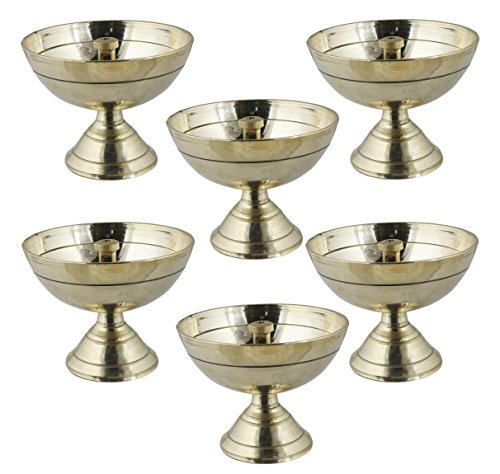 Set of 6 - Handmade Indian Puja Brass Oil Lamp - Diya Wick Lamp Night Light Lantern -Dia 2.2 Inch
