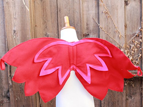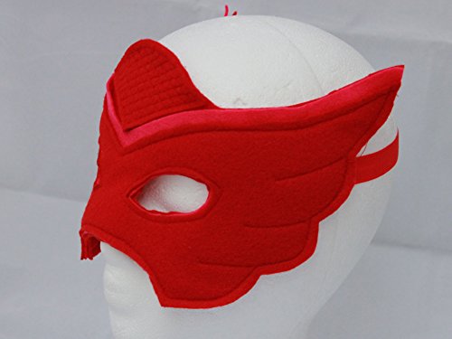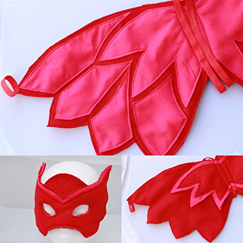 -. Brand : Blooms And Bugs Handmade -. Color : Red -. Department : girls -. Feature : Owlette Cape and Mask / Handmade Felt Wings and Mask in perfect Owlette Colors / Handmade in USA -. Model : W1 -. PackageQuantity : 1 -. ProductGroup : Apparel -. ProductTypeName : CHILDRENS_COSTUME -. Size : One Size -. Title : Owlette Wings and Mask - Owlette Costume - Owlette Pj Mask Owlette Mask and Cape -. UPC : 014181856400 Get this beautifully handcrafted pair of Owlette Wings and Mask for your little Owlette fan. These wings and mask are handmade in USA. Each cape is made of about 12 hand-cut pieces which are sewn together to make this triple layered cape. the mask is also handcut and sewn with intricate Owlette patterns on the surface, She won't want to take these off...ever.