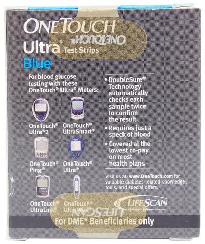 -. Brand : One Touch -. EAN : 0820140017559 -. Feature : DoubleSure Technology automatically checks each blood sample twice0 / FastDraw capillary action draws sample in less than 1 second / Provide visual confirmation of adE.q.u.a.t.e blood sample / Stands behind eight years of proven accuracy -. IsAutographed : 0 -. IsMemorabilia : 0 -. Label : One Touch -. LegalDisclaimer : IN MINT CONDITION,3 BOXES OF 100 EA. EXP DATE ON ALL THREE ARE 3/17 3/17 AND 12/16 (ONE TOUCH ULTRA BLUE) -. Manufacturer : One Touch -. MPN : 020994-100 -. NumberOfItems : 100 -. PackageQuantity : 1 -. PartNumber : 020994-100 -. ProductGroup : BISS -. ProductTypeName : LAB_SUPPLY -. Publisher : One Touch -. Studio : One Touch -. Title : 100 One Touch Ultra Blue Test Strips - 50 ct x 2 - Expiration December 2016 or Later -. UPC : 820140017559