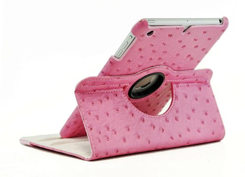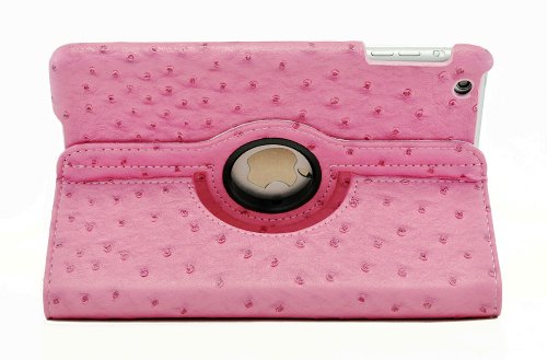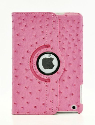 iPad Mini 4 Case, LiViTech(TM) Ostrich Design Series 360 Rotating PU Leather Case Smart Cover for Apple iPad Mini 4 (Hot Pink)