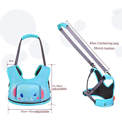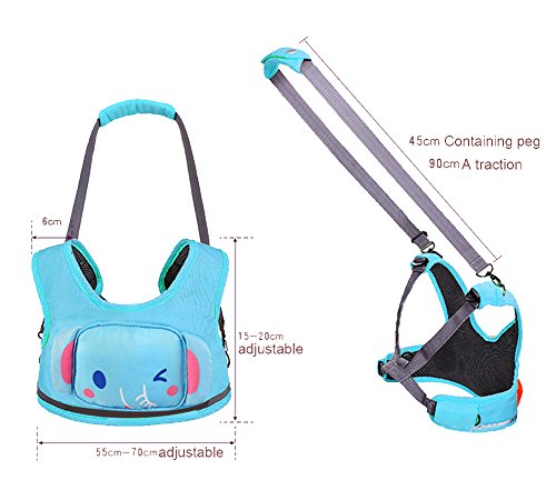Specification Item Weight: 250g Color: Blue / Yellow / Green / Pink / Coffee Item Brand: Zicac Suitable for 10-48 months Waistline:55-100cm/21.7"-39.4" Shoulder strap width: 6cm/2.4" Traction belt length:130cm/51.3" Features: #1 3-in-1 Toddler Safety Harness Portable High Chair Shopping Cart Safety Strap #2 The front of this harness has a cute animal that squeaks if you press #3 Big bonus: The bottom part of the harness is a reflector which is if you are using this at night people driving will see your child #4 There are 4 buckles, 2 that slides and 2 snaps ,adjust it which you prefer . #5 The straps is padded and make more comfortable to your kids #6 Machine Washable #7 Great for Travel/Home Package Including: 1 * Toddler Safety Harness