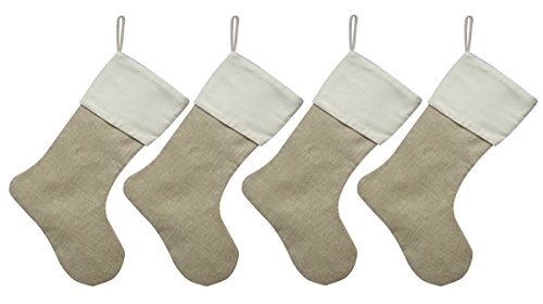 Set of 4 Christmas Stocking Large Size Plain Burlap Stocking Christmas Decor