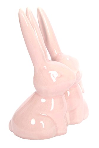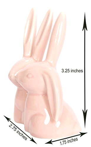 Bunny Rabbit Ring Holder, Pink Ceramic Engagement and Wedding Ring Holder, Measures 2.75"Wx3.25"Hx1.75"D