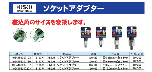 【商品名】(業務用20個セット) H&H ソケットアダプター/作業工具 【差込9.5mm→差込6.35mm】 SA-32 オウ3/8×トツ1/4