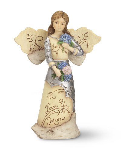 Elements Love You Mom Angel Figurine by Pavilion, Holding Flowers, 5-1/2-Inch
