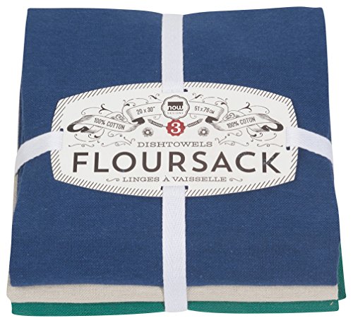 Now Designs 911611 Floursack Kitchen Towels, Set of Three, Navy, 3 Piece