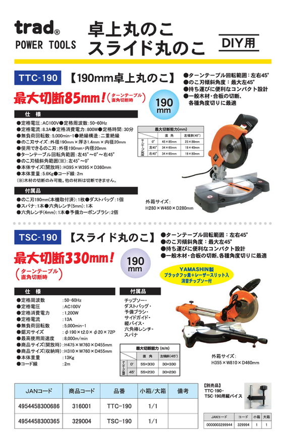 【商品名】(業務用3個セット) TRAD 卓上丸のこ/電動工具 【最大切断85mm】 外径:190mm コンパクト TTC-190 〔DIY用 日曜大工〕