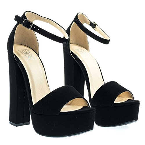 Binding : Apparel Product Description About This Shoes :Charm your friends with these towering high chunky heel sandals with a thick platform, retro open toe silohuette and adjustable ankle straps. Brand - Speed Limit 98 Colors Available: Black Nubuck, Beige Velvet Occasion: Clubwear Shoe Type: Heels - Open Toe Shoe Style: Ankle Strap Inner Lining: synthetic Heel Height In Inches - 5.25 Heel Style - Block Toe Style - open-toe Platform Height In Inches - 1.75 Shaft Height In Inches - n/a Circumference Opening - n/a Strap Type - ankle-strap Sole - manmade All Man Made Material unless otherwise stated. Computer/Phone/Table monitors might show color differently because of its quality or calibration, we suggest you look at the photo in at least 3 monitors if you need exact color match of your shoes. 0