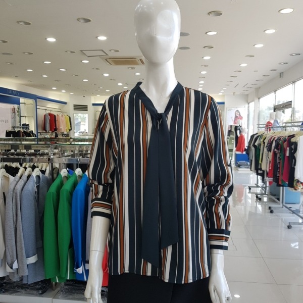 셔츠형 스트라이프 롤업 블라우스-CB7F9-WRB740-그린