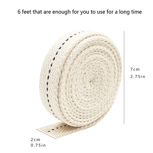 Length: 3/4 inch wide, 6 foot roll, 100% natural cotton, perfect fit for Oil lamps or Paraffin Oil and Kerosene based Lanterns