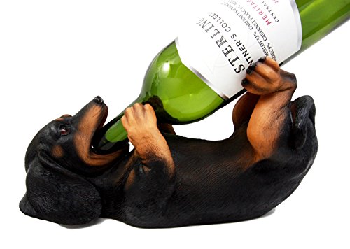 Studio : Atlantic Collectibles Publisher : Atlantic Collectibles Binding : Kitchen Product Description This Dachshund wine bottle holder measures 6" tall, 11" long and 5" deep approximately. This Dachshund wine bottle holder is made of polyresin, hand painted and polished individually. Color Tone may vary from pictures. It makes a great centerpiece for your wine cellar or your dining table!!! Give it away as a gift to a loved one too!!! This adorable Dachshund resembles your very own pet! Famously nicknamed the sausage dog, he is a very stubborn hunting dog and he has a knack to chase small animals around. He is featured in this showcase in the black and tan short hair coat breed. 0