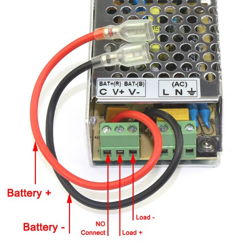 Single output, it can switch to battery power automatically as battery detecting, protecting, power cuting