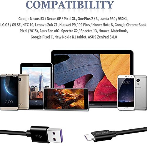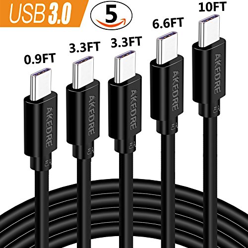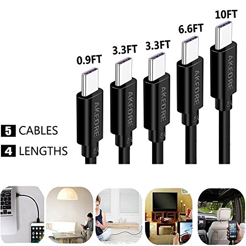 USB Type C Cable, AKEDRE Hi-speed Type-C to USB 3.0 Cable 5Pack [10FT 6.6FT 3.3FTX2 0.9FT] for USB Type-C Devices Including the new MacBook, ChromeBook Pixel, Nexus, OnePlus 2 and More