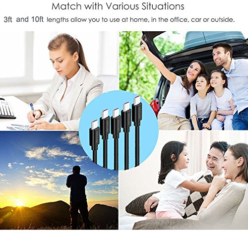- ♥ Different Length : 5 pack USB C Cables in assorted Lengths [0.9FT 2X3.3FT 6.6FT 10FT] is the ideal length for usage at home, in your office and more places. Never worry about not having sufficient reach from your USB charger cable.