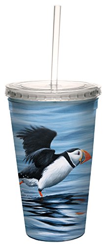 Tree-Free Greetings 35723 Jeremy Paul Puffin Running Double-Walled Cool Cup with Reusable Straw, 16-Ounce
