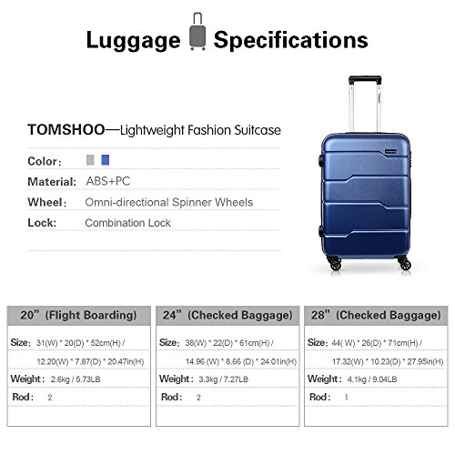 (TOMSHOO)/Accessories/Luggage, Bags Travel/DIRECT FROM USA/TOMSHOO 3PCS Luggage Sets Lightweight Spinner Suitcase Hard Shell ABS Trolley 20" 24" 28"