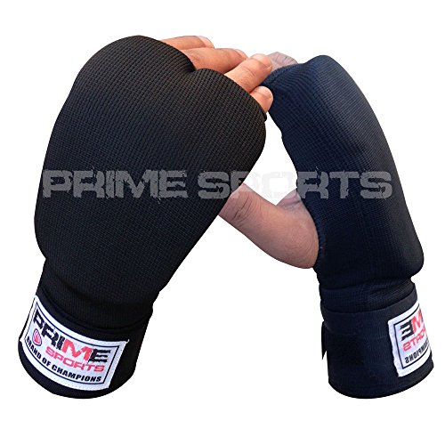 (Prime)/Boxing/Boxing Gloves/DIRECT FROM USA/New Inner Glove with Wraps Jumbo Foam Padded Punch Bag Mitts MMA Wris t Fight Pair Black